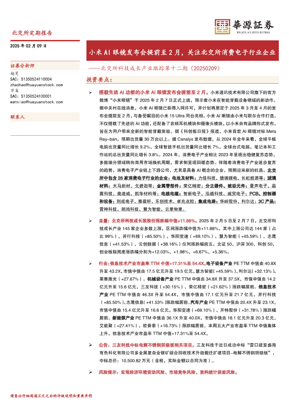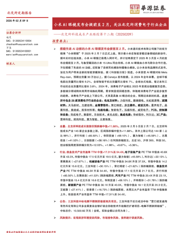 【华源证券】【20250209】北交所科技成长产业跟踪第十二期:小米AI眼镜发布会提前至2月,关注北交所消费电子行业企业-17页