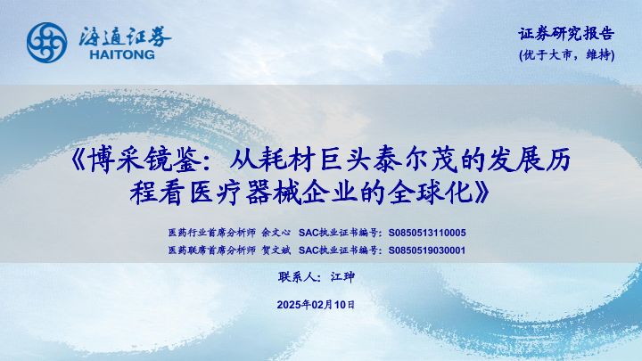 【海通证券】【20250210】博采镜鉴:从耗材巨头泰尔茂的发展历程看医疗器械企业的全球化-34页