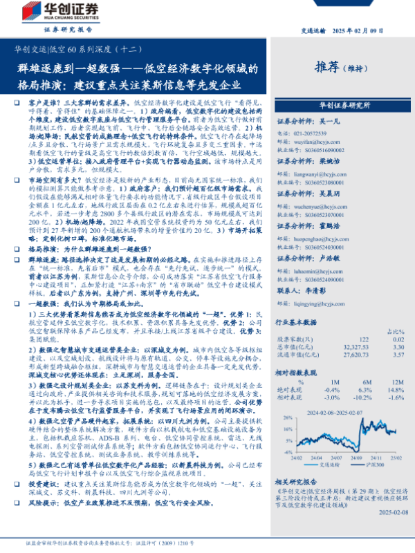 【华创证券】【20250209】华创交运行业低空60系列深度(十二):群雄逐鹿到一超数强——低空经济数字化领域的格局推演,建议重点关注莱斯信息等先发企业-32页