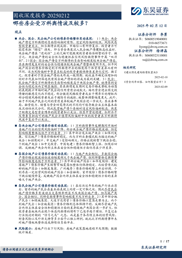 【东吴证券】【20250212】固收深度报告:哪些房企受万科舆情波及较多?-17页