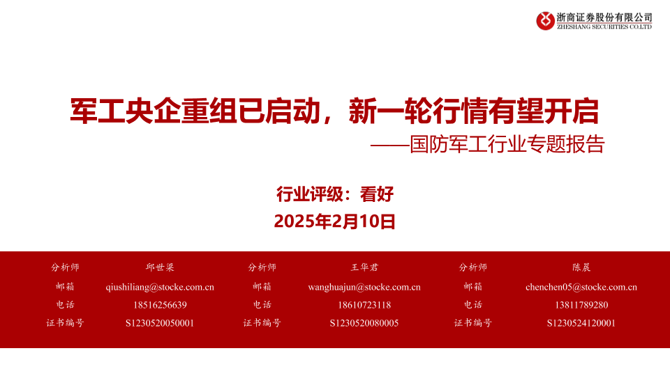 【浙商证券】【20250210】国防军工行业专题报告:军工央企重组已启动,新一轮行情有望开启-12页