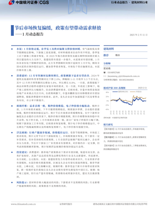 【银河证券】【20250211】建筑材料行业1月动态报告:节后市场恢复偏缓,政策有望带动需求释放-23页