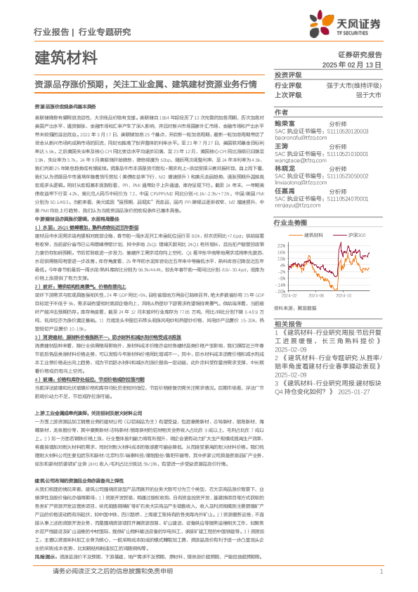 【天风证券】【20250213】建筑材料行业专题研究:资源品存涨价预期,关注工业金属、建筑建材资源业务行情-20页