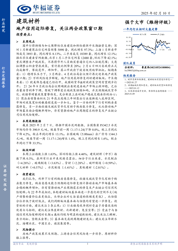 【华福证券】【20250210】建筑材料行业定期报告:地产信用边际修复,关注两会政策窗口期-11页