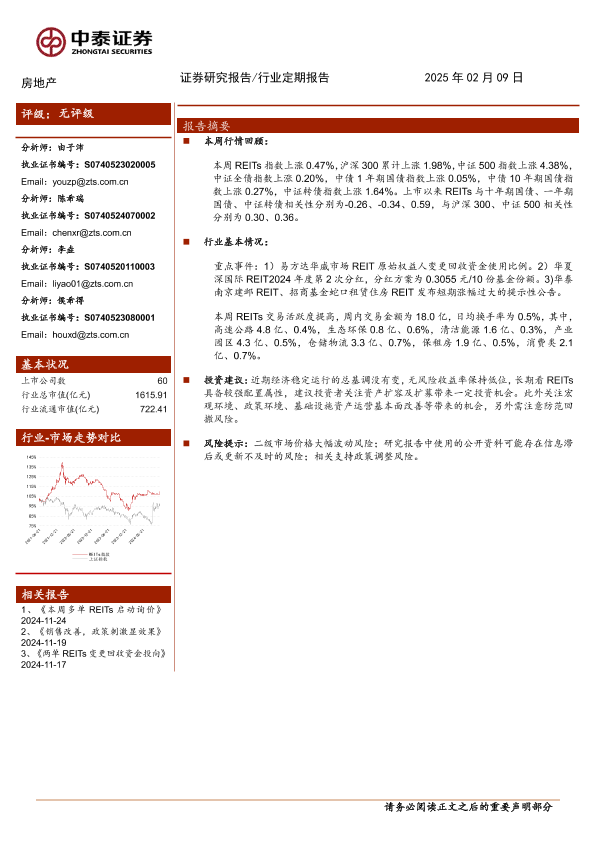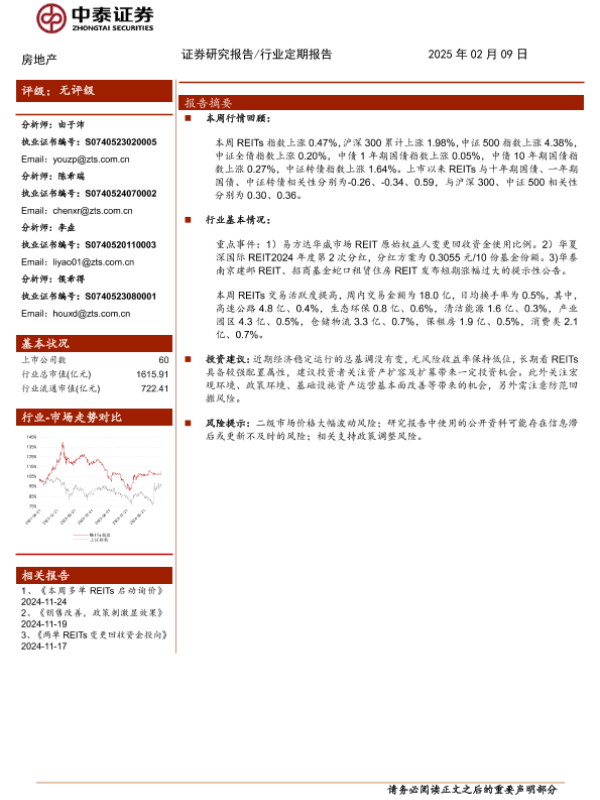 【中泰证券】【20250209】房地产行业:节后REITs延续上涨趋势-13页