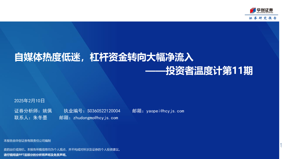 【华创证券】【20250210】投资者温度计第11期:自媒体热度低迷,杠杆资金转向大幅净流入-16页