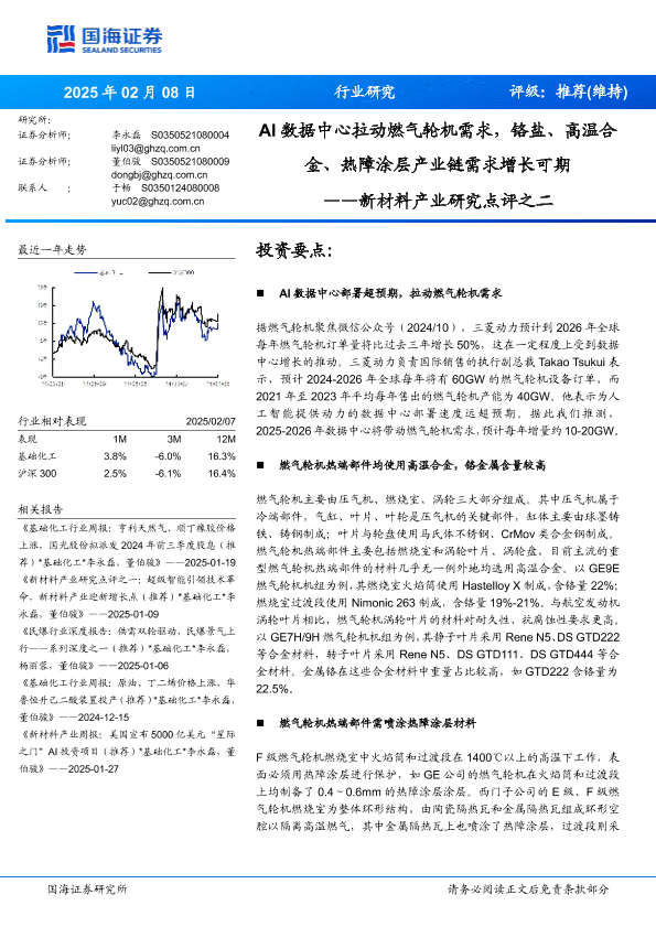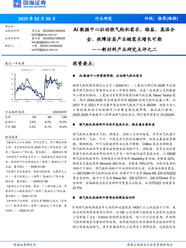 【国海证券】【20250208】AI数据中心拉动燃气轮机需求,铬盐、高温合金、热障涂层产业链需求增长可期-13页