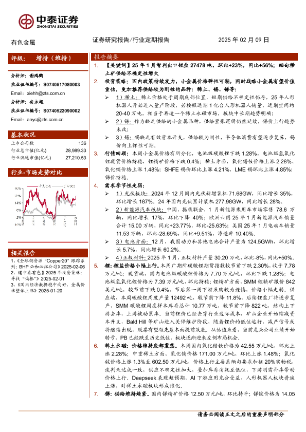 【中泰证券】【20250209】有色金属行业:缅甸供给不确定性提升,稀土价格上行-25页