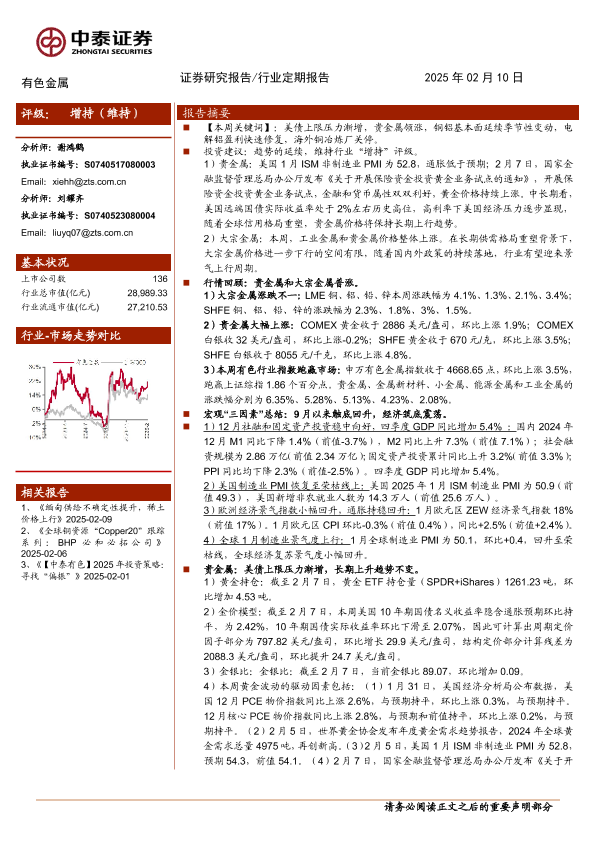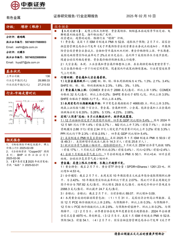 【中泰证券】【20250210】有色金属行业:美债上限压力渐增,贵金属领涨-22页