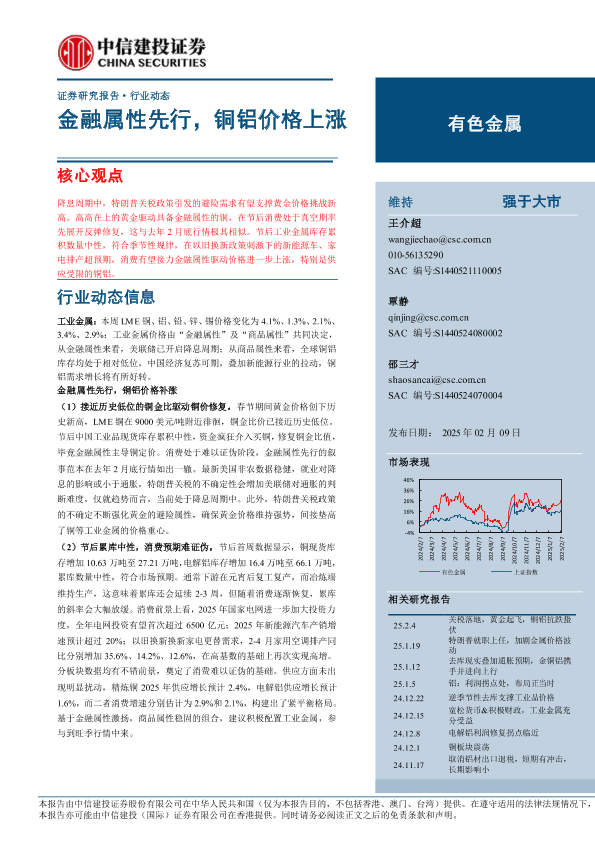 【中信建投证券】【20250209】有色金属行业:金融属性先行,铜铝价格上涨-12页