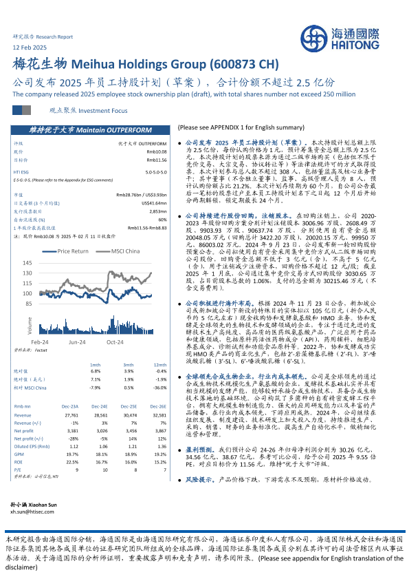 【海通国际】【20250212】梅花生物(600873)公司发布2025年员工持股计划(草案),合计份额不超过2.5亿份-13页