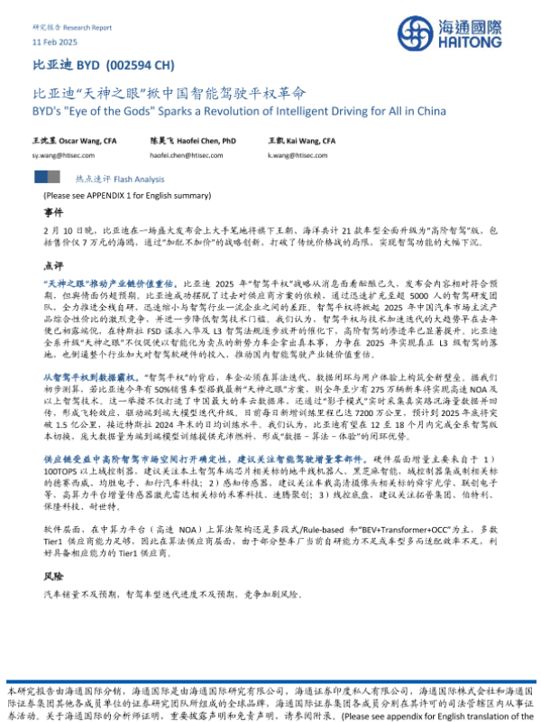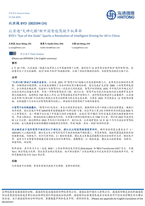 【海通国际】【20250211】比亚迪“天神之眼”掀中国智能驾驶平权革命-10页