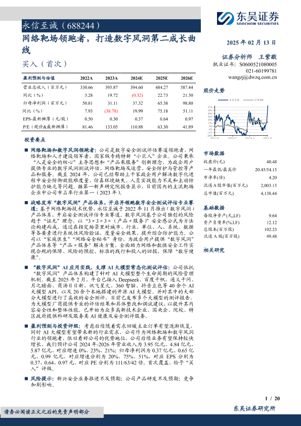 【东吴证券】【20250213】永信至诚(688244)网络靶场领跑者,打造数字风洞第二成长曲线-20页