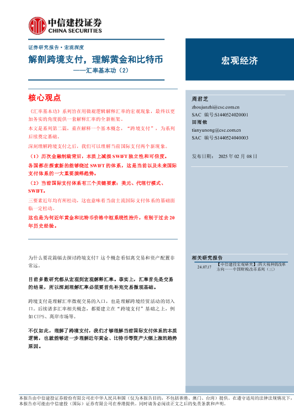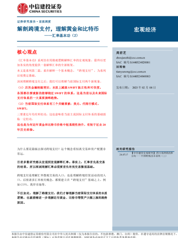 【中信建投证券】【20250208】汇率基本功(2):解剖跨境支付,理解黄金和比特币-24页