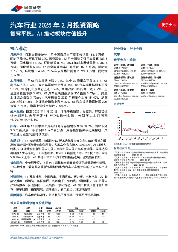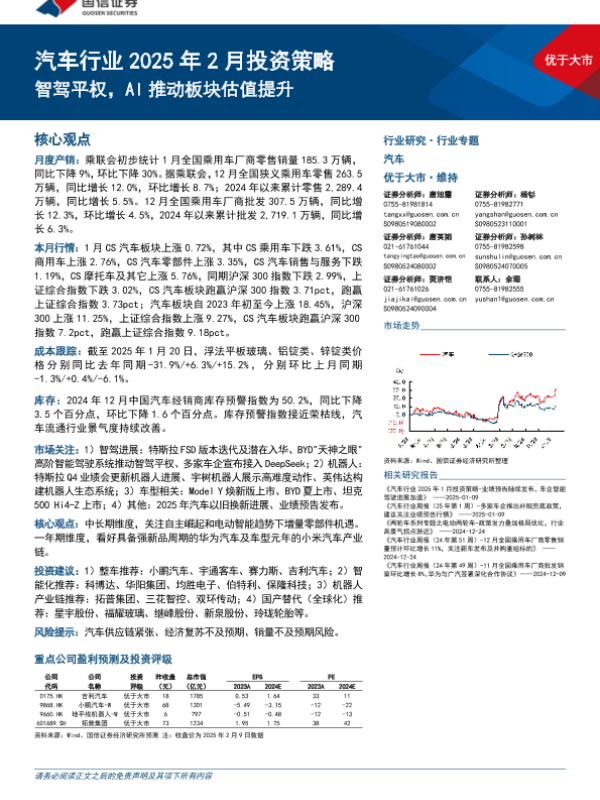【国信证券】【202502】汽车行业2025年2月投资策略:智驾平权,AI推动板块估值提升-34页