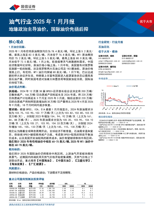 【国信证券】【202501】油气行业2025年1月月报:地缘政治主导油价,国际油价先扬后抑-26页