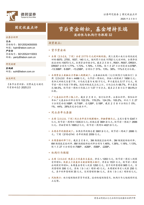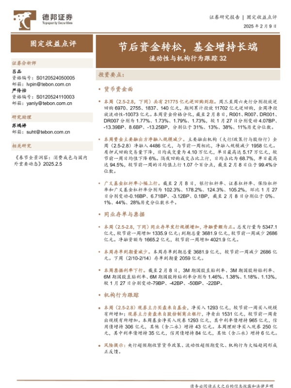 【德邦证券】【20250209】流动性与机构行为跟踪32:节后资金转松,基金增持长端-18页