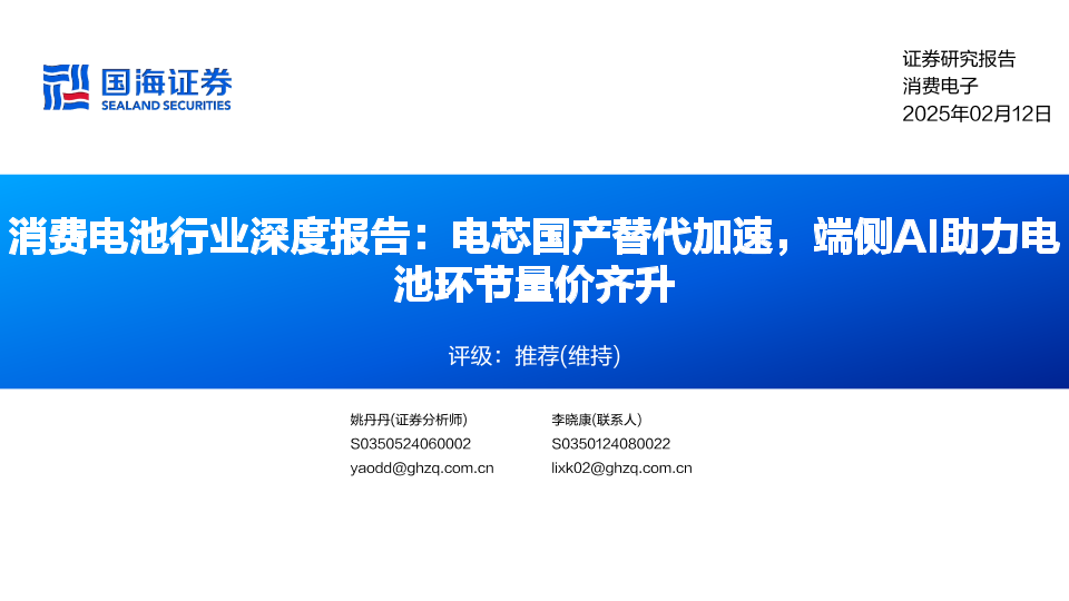 【国海证券】【20250212】消费电池行业深度报告:电芯国产替代加速,端侧AI助力电池环节量价齐升-47页