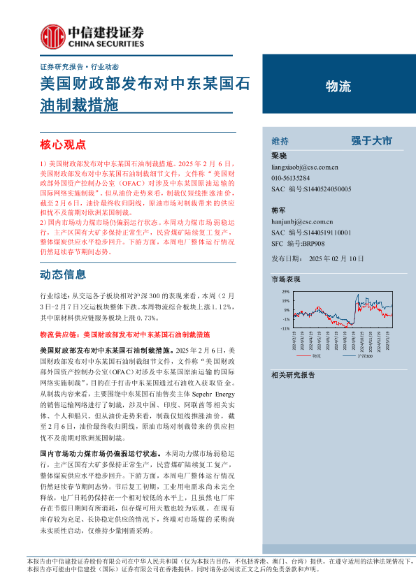 【中信建投证券】【20250210】物流行业:美国财政部发布对中东某国石油制裁措施-14页