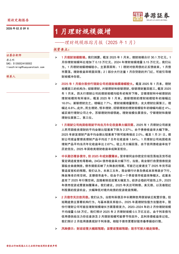 【华源证券】【20250209】理财规模跟踪月报(2025年1月):1月理财规模微增-11页