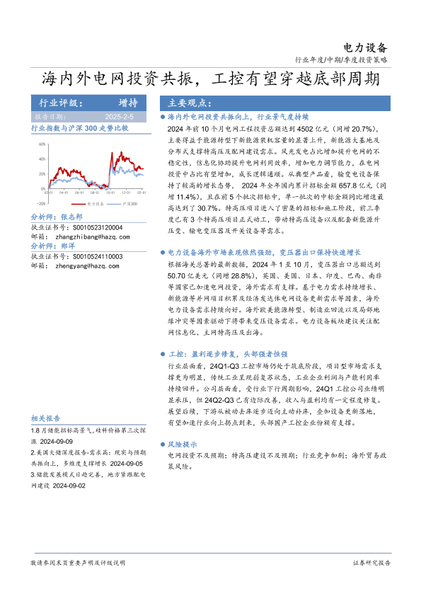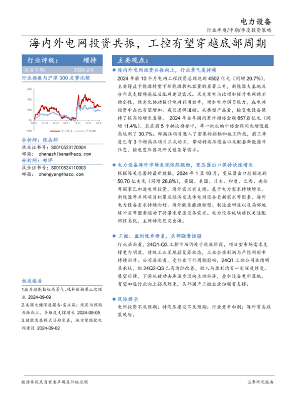 【华安证券】【20250205】电力设备行业年度/中期/季度投资策略:海内外电网投资共振,工控有望穿越底部周期-25页