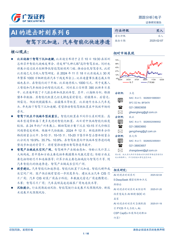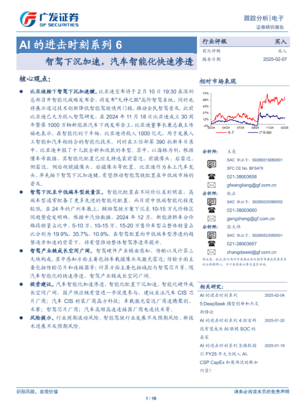 【广发证券】【20250207】电子行业AI的进击时刻系列6:智驾下沉加速,汽车智能化快速渗透-16页