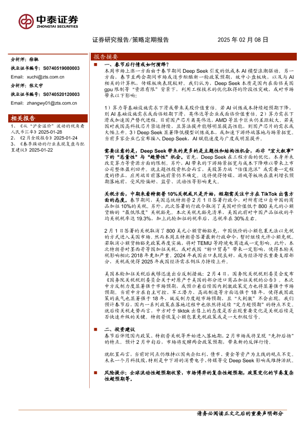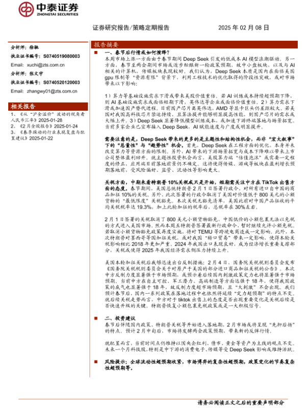 【中泰证券】【20250208】策略定期报告:春节后行情或如何演绎?-12页