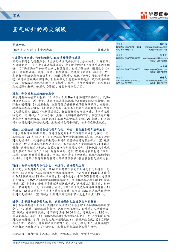 【华泰证券】【20250208】策略月报:景气回升的两大领域-37页