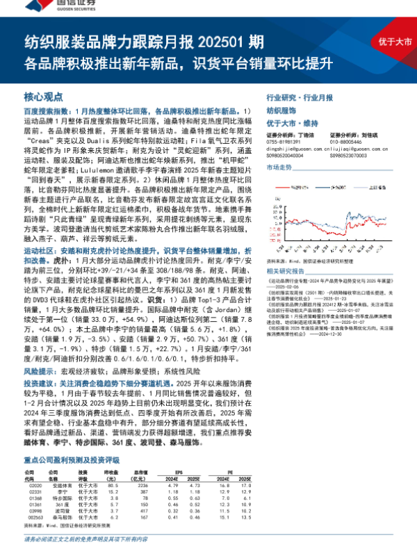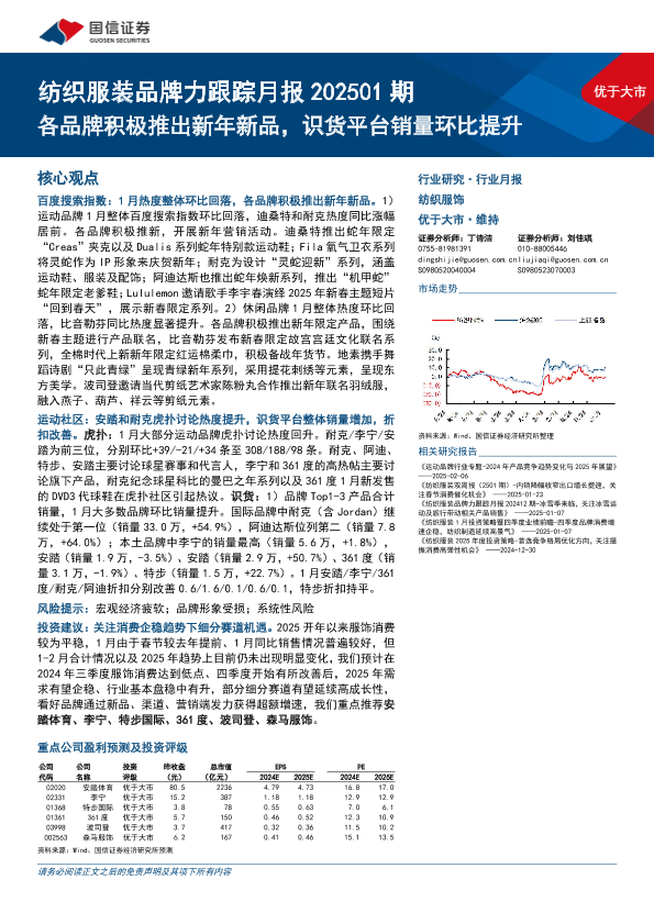 【国信证券】【202501】纺织服装行业品牌力跟踪月报202501期:各品牌积极推出新年新品,识货平台销量环比提升-13页