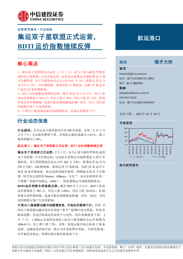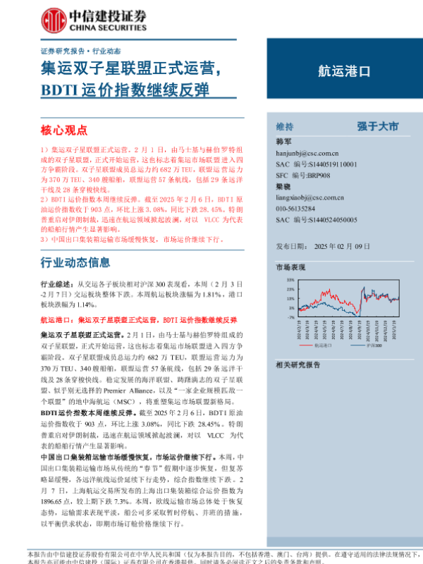 【中信建投证券】【20250209】航运港口行业:集运双子星联盟正式运营,BDTI运价指数继续反弹-24页