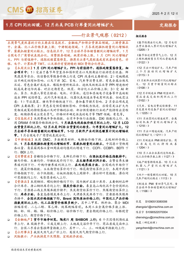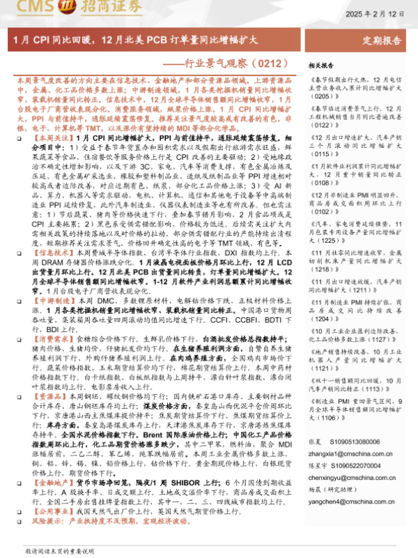 【海通证券】【20250212】行业景气观察(0212):1月CPI同比回暖,12月北美PCB订单量同比增幅扩大-31页