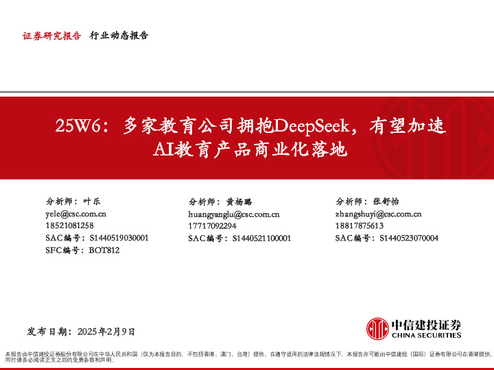 【中信建投证券】【20250209】计算机行业25W6:多家教育公司拥抱DeepSeek,有望加速AI教育产品商业化落地-57页