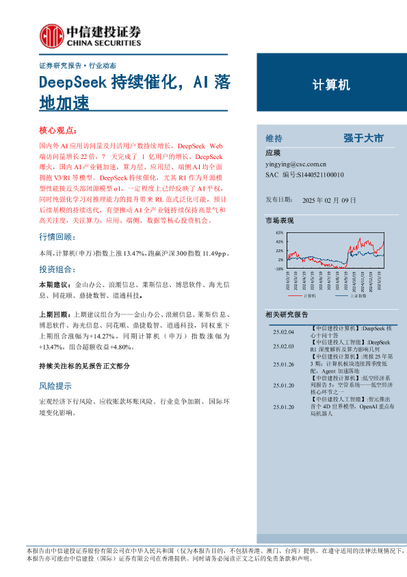 【中信建投证券】【20250209】计算机行业动态:DeepSeek持续催化,AI落地加速-12页