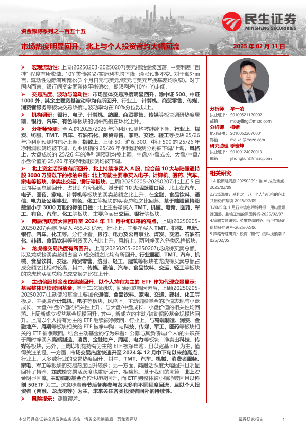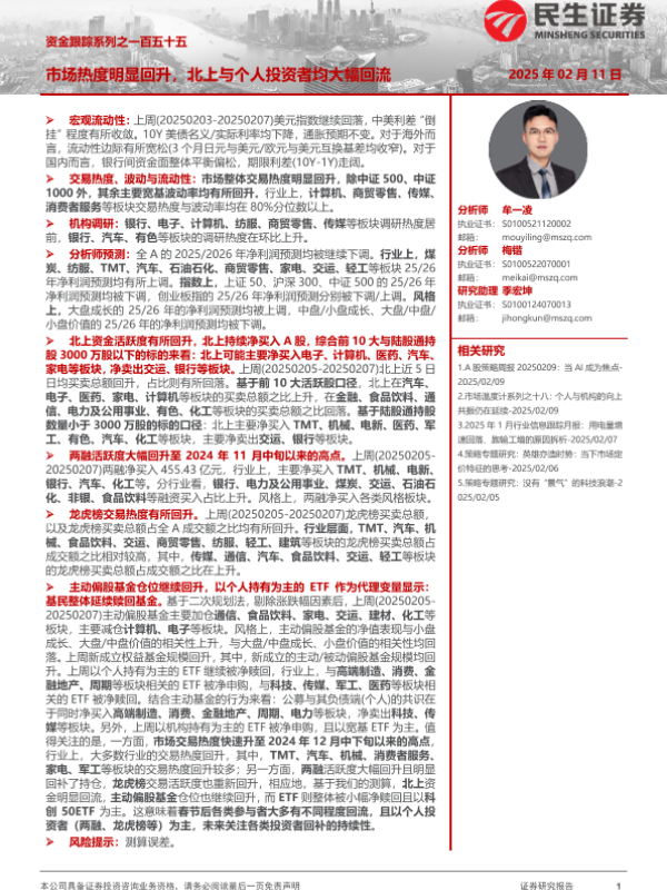 【民生证券】【20250211】资金跟踪系列之一百五十五:市场热度明显回升,北上与个人投资者均大幅回流-39页