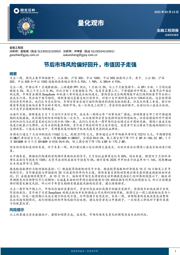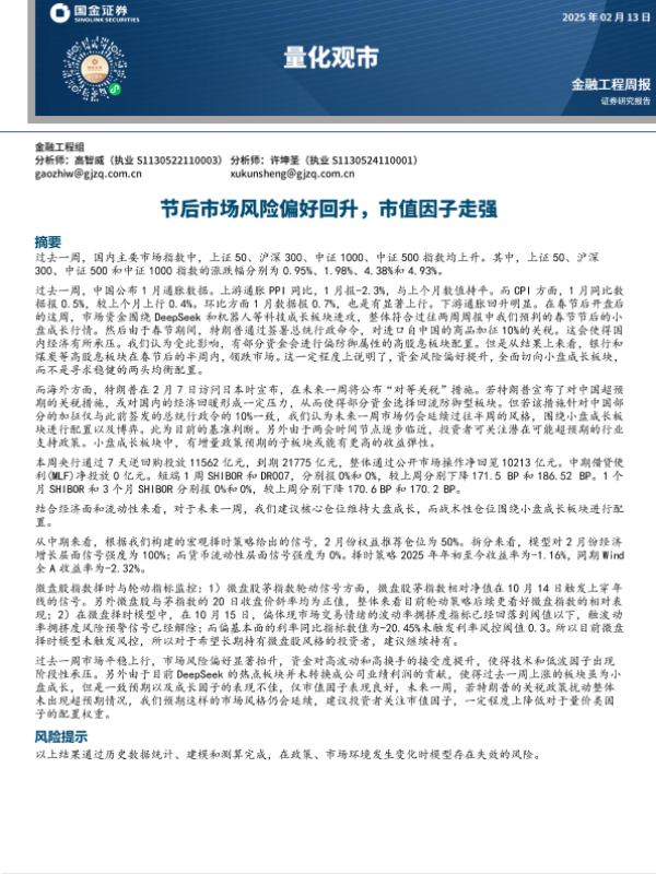【国金证券】【20250213】量化观市:节后市场风险偏好回升,市值因子走强-11页