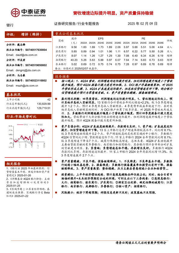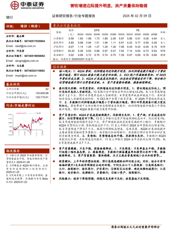 【中泰证券】【20250209】银行业13家上市银行2024年业绩快报综述:营收增速边际提升明显,资产质量保持稳健-13页