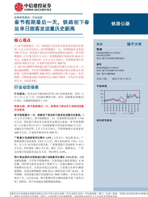 【中信建投证券】【20250209】铁路公路行业:春节假期最后一天,铁路创下春运单日旅客发送量历史新高-12页