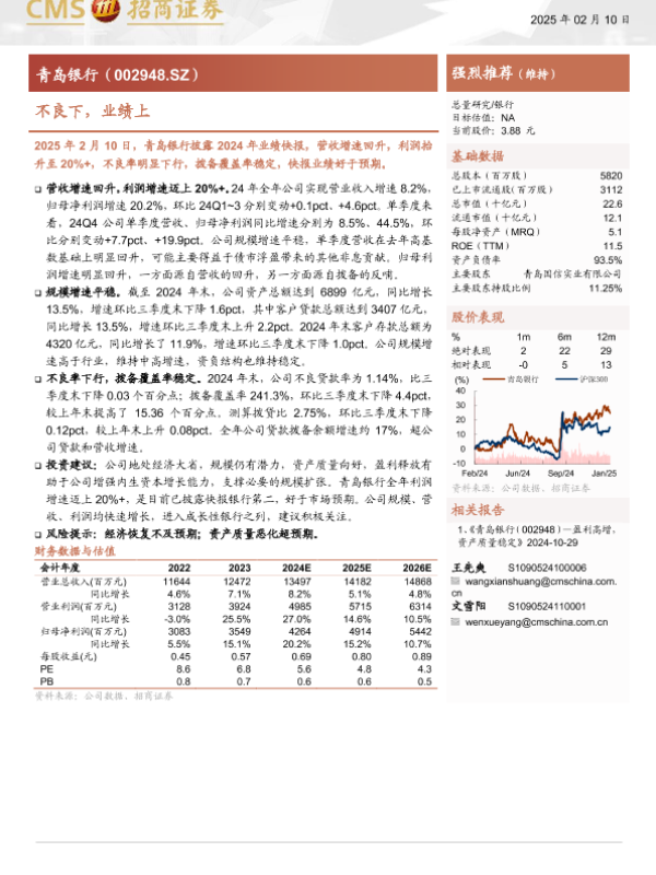 不良贷款 招商证券 财务分析 银行业绩 青岛银行