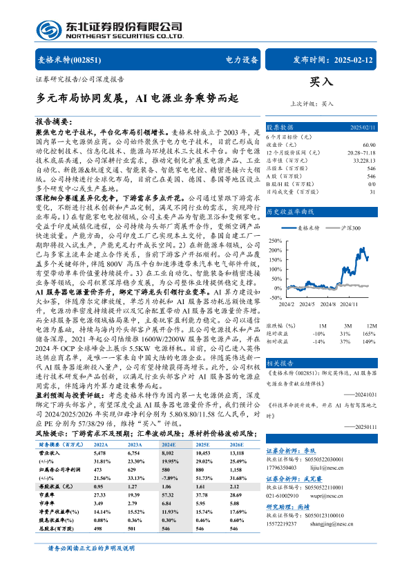 【东北证券】【20250212】麦格米特(002851)多元布局协同发展,AI电源业务乘势而起-31页