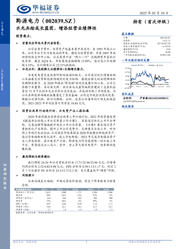 【华福证券】【20250210】黔源电力(002039)水光共绘成长蓝图,增添经营业绩弹性-12页