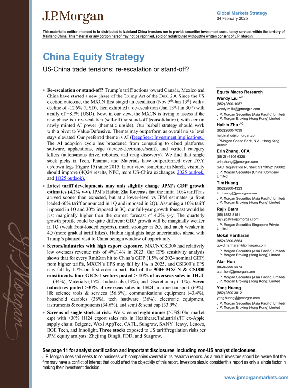 【J.P. Morgan】【20250204】gan-China Equity Strategy US-China trade tensions re-escalation-16页