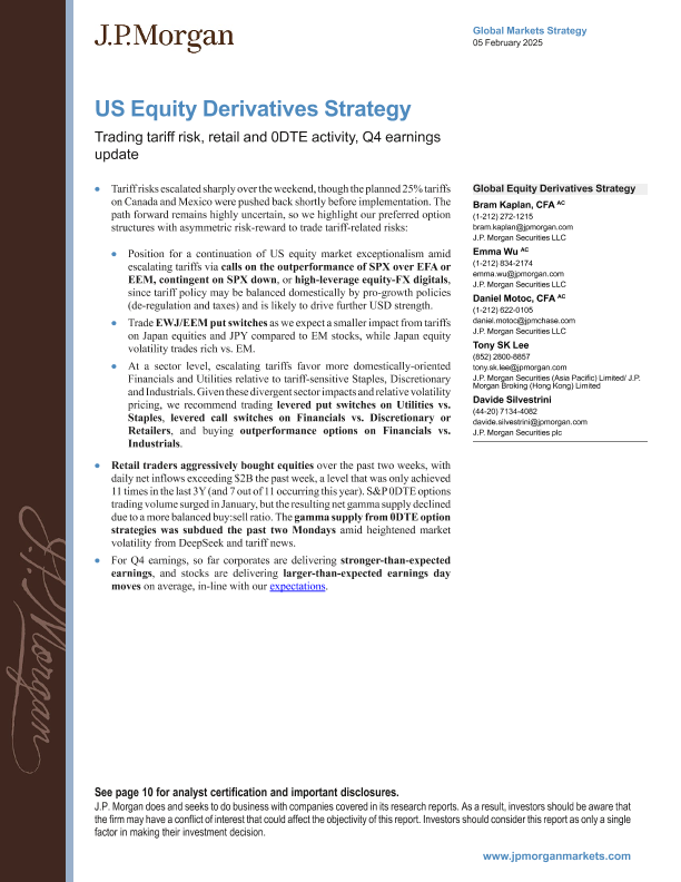 【J.P. Morgan】【20250205】US Equity Derivatives Strategy Trading tariff risk, retail and 0DTE activity, Q4 earnings update-15页