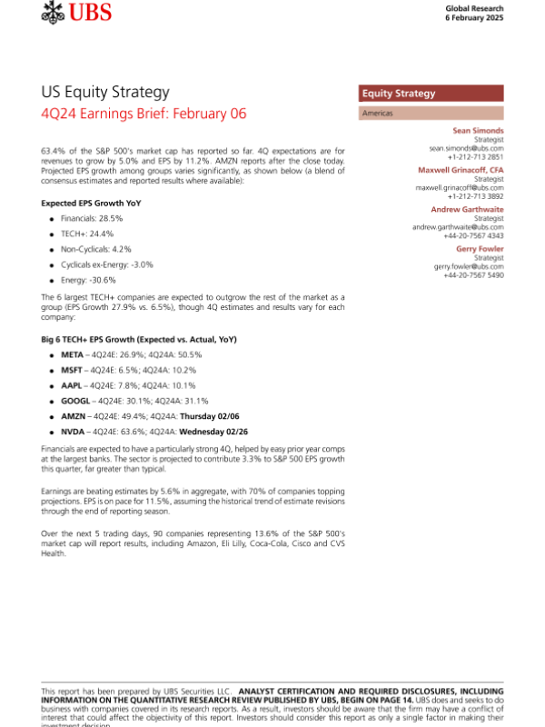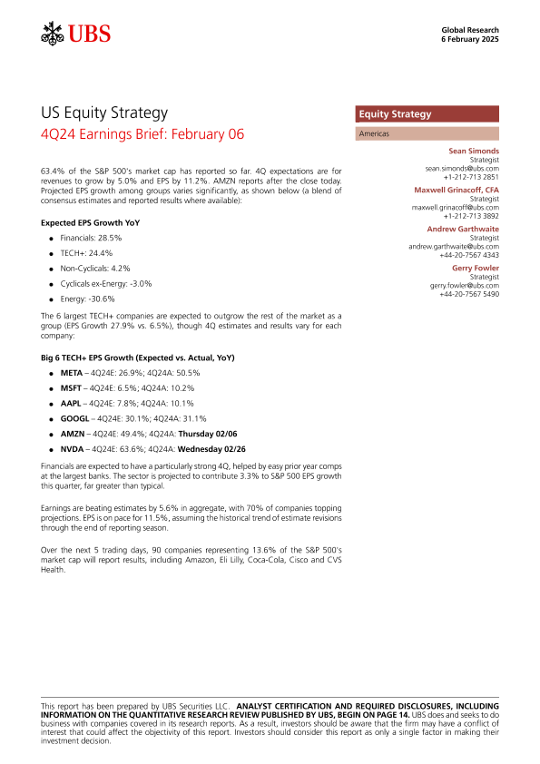 【UBS Securities LLC】【20250206】US Equity Strategy _4Q24 Earnings Brief February 06-18页