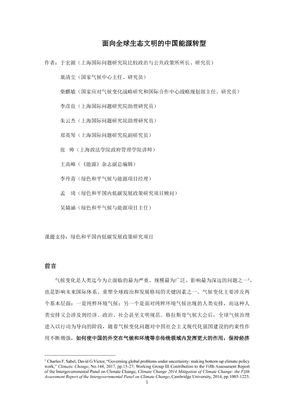 【绿色和平国内低碳发展政策研究项目】【20211013】面向全球生态文明的中国能源转型-39页