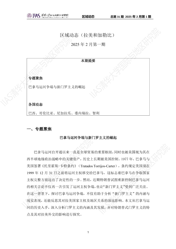 【未知】【202502】拉美和加勒比地区《区域动态》2025年2月第一期-巴拿马运河争端与新门罗主义的崛起-17页