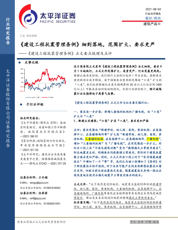 【太平洋证券】【20210804】建筑行业《建设工程抗震管理条例》正文要点梳理及点评:《建设工程抗震管理条例》细则落地,范围扩大、要求更严-20页