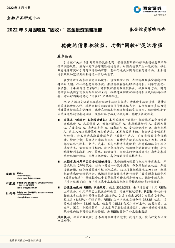 【国金证券】【20220301】2022年3月固收及“固收+”基金投资策略报告:稳健纯债累积收益,均衡“固收+”灵活增强-22页