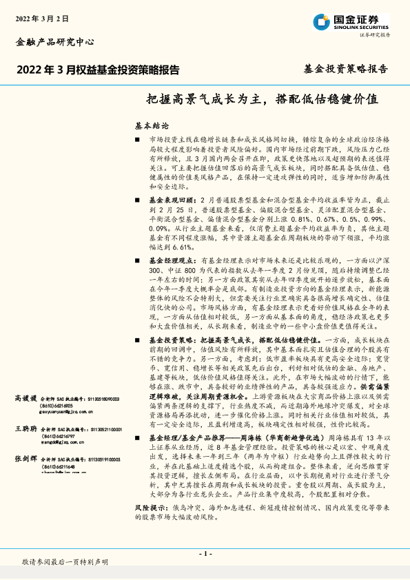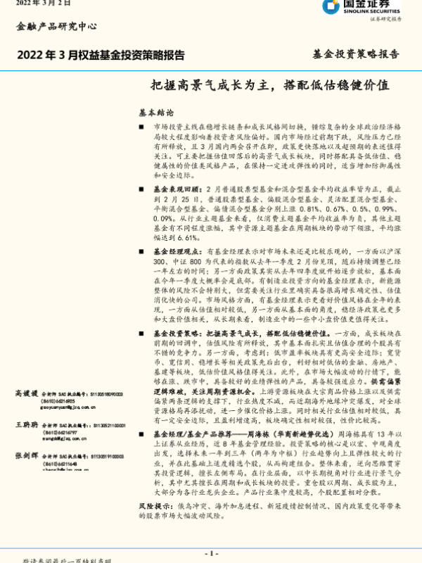 【国金证券】【20220302】2022年3月权益基金投资策略报告-18页