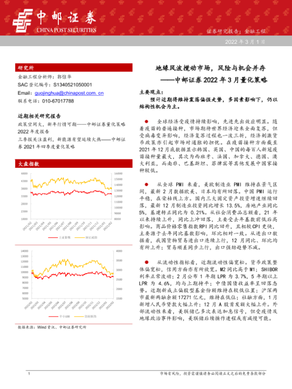 【中邮证券】【20220301】2022年3月量化策略:地缘风波搅动市场,风险与机会并存-36页