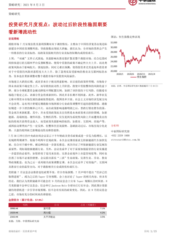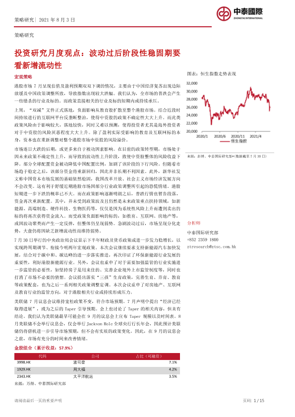 【中泰国际】【20210803】投资研究月度观点:波动过后阶段性稳固期要看新增流动性-15页